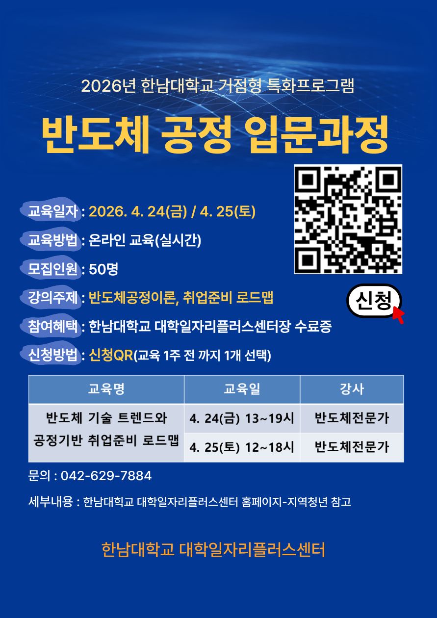 - [한남대] 2026년 「반도체 공정 입문교육 및 전문가 과정」 홍보 안내