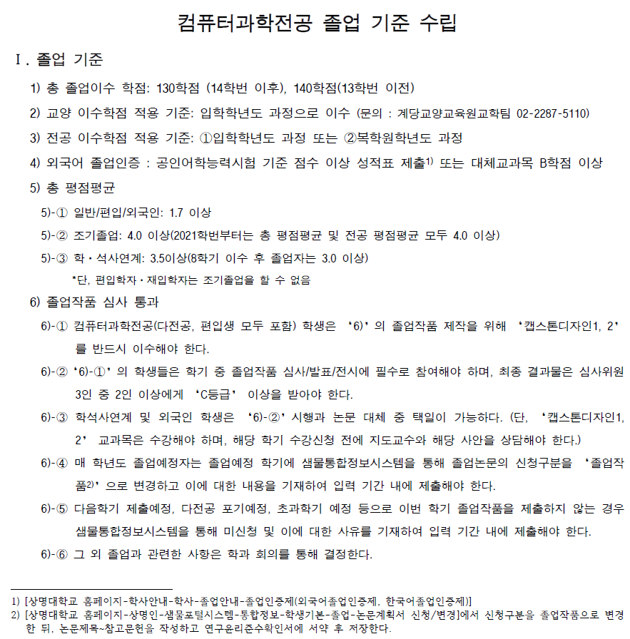 - 상명대학교 홈페이지 전공이수기준(세부기준 바로가기) 및 계당교양교육원 홈페이지 교양이수기준(세부기준 바로가기)