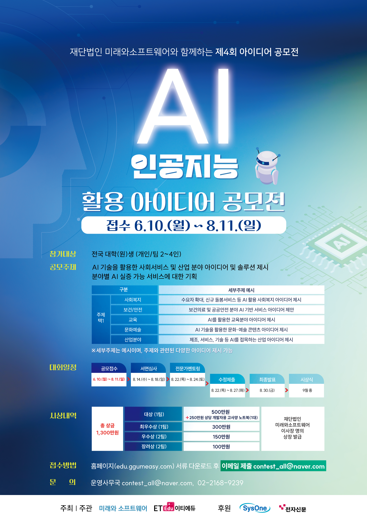 - [재단법인 미래와소프트웨어] AI 인공지능 활용 아이디어 (공모전)